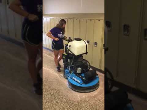 Hone, polish and burnish concrete and terrazzo floors with diamonds and pads. Strip and scrub VCT floors with strip brushes or pads. The Refresher features dust control capability with a gimbaled, synchronous planetary drive and integral water tank. Drive includes three sets of quick change driver heads/brushes: 3 strip brushes, 3 Velcro drivers and 3 Might-Lok drivers.